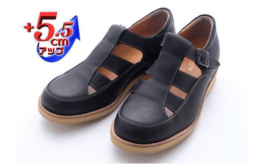 本革 幅広 4E ワイド ビジネスサンダル オフィスサンダル 5.5cmアップ シークレットサンダル No.567 ブラック 23.5cm [№5990-8028]0337