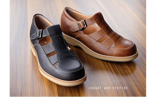 7. 本革 幅広 4E ワイド ビジネスサンダル オフィスサンダル 5.5cmアップ シークレットサンダル No.567 チョコ 26.0cm [№5990-8040]0338