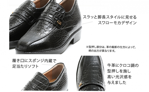 ビジネスシューズ 本革 革靴 紳士靴 牛革クロコ調スワローモカ 7cmアップ シークレットシューズ No.236 ブラウン 25.5cm [№5990-8079]0343