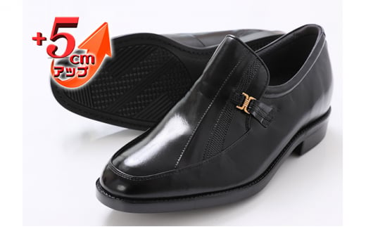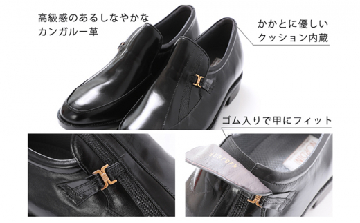 7. カンガルー革 ビジネスシューズ 紳士靴 Uモカ スリッポン 5cmアップ 4E ワイド No.635 ブラック 24.0cm [№5990-8083]0344