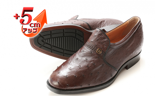 7. オーストリッチ革 ビジネスシューズ 紳士靴 スリッポン 5cmアップ 4E ワイド No.65 ブラウン 23.5cm [№5990-8103]0347