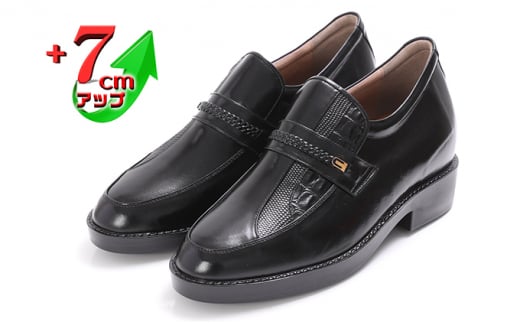 7. ビジネスシューズ 本革 革靴 カンガルー革 紳士靴 デザインモカ 7cmアップ シークレットシューズ No.235 ブラック 25.0cm [№5990-8169]0356