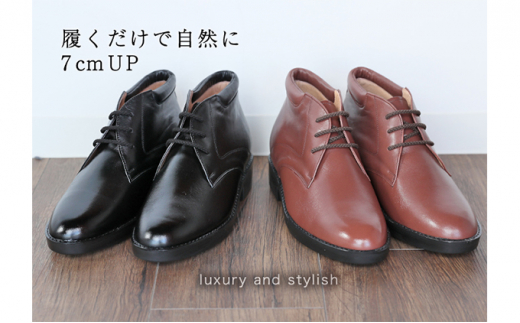 ビジネス 本革 革靴 カジュアル デザートブーツ 紳士靴 7cmアップ シークレットブーツ No.350 ブラウン 24.5cm [№5990-8189]0359