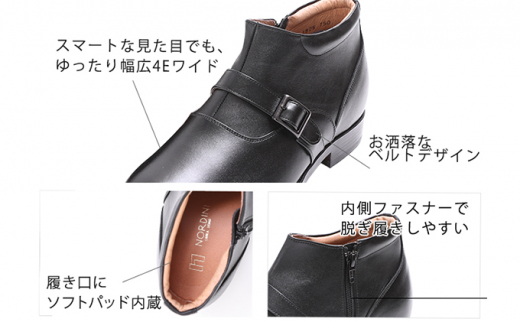 柔らかで高級感のある牛革キップを使用し、内側ファスナーで脱ぎ履き楽々。
