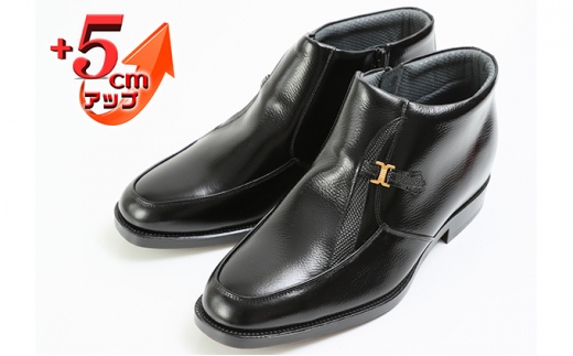 7. ビジネスブーツ 紳士靴 デザインモカハーフブーツ 5cm シークレットブーツ 4E ワイド No.763 ブラック 24.0cm [№5990-8237]0366