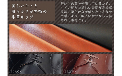 きめの細かいソフトな牛革キップで足馴染み抜群。