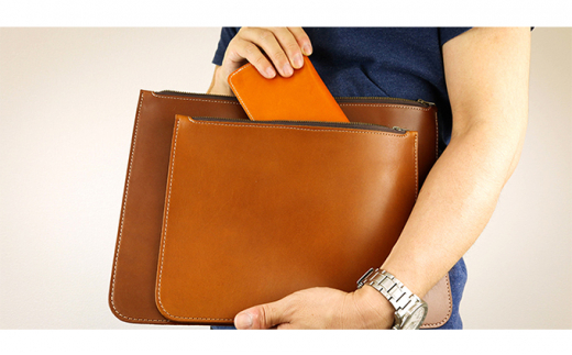 栃木レザーで造りあげたシンプルな二連タイプの本革クラッチバッグ。