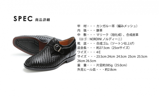 7. ビジネスシューズ 本革 革靴 カンガルー革 通気性 メッシュ モンク 紳士靴 4E ワイド No.1275 ブラック 23.5cm [№5990-8579]0416