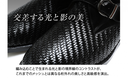 熟練職人の手編みメッシュ素材は、通気性に優れ靴内部のムレを軽減。