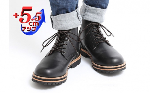 7. ビブラムソール(vibram ヴィブラム) ワークブーツ 本革 幅広 4E ワイド マウンテンブーツ メンズ 5.5cmヒールアップブーツ No.wk1563 ブラック 26.0cm [№5990-8589]0417