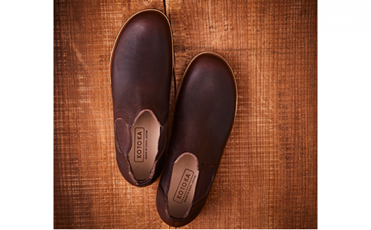 奈良県大和郡山市は日本有数の革靴の産地。この地で昔からひたむきに革靴作りに向き合ってきた靴メーカー7社が共同開発した革靴「KOTOKA」はシンプルで履きやすいデザインが特徴。甲革に鎌倉時代に遡る歴史を持つ日本最大の革の産地、兵庫県たつの市で、特に丁寧な加工で評価の高いタンナー「マルヒラ」で、植物タンニンで二次なめしされた革を使用。製造過程で通常2回使用するドラムを、なめし、染め、蝋引き、揉みの計4回使用し、手間をかけてつくられた革です。色ムラやシワが、履くほどに深味わいを醸し出します。古都ラインの靴はこの革の風合いを生かした、シンプルで履きやすく、飽きのこないデザインの靴です。