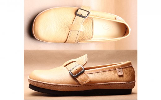 YAMATOismのポリシー「丁寧につくること」はそのままに「心が豊かになる暮らし」「永く寄り添う」というサスティナブル(持続可能)な暮らしをブランドテーマにした革の柔らかさ、履き心地にこだわったボタニカルタンレザーシューズ。表革は原皮に日本の食用赤牛を使用しミモザの植物性タンニンで鞣したエコレザーを使用。裏革を使わず表革のみの構造でしっとり柔らかな質感が直接足に感じられるのが特徴。インソールの表面には奈良県菟田野でタンニン鞣しされた鹿革を使用し吸湿性に優れている。底材は生分解性樹脂と天然ゴムを使用し自然界に還る。外装箱は引き出し型で小物などの収納箱としても利用可能。靴の包み布に奈良の蚊帳生地で作られた布を使用し靴のお手入れクロスとして利用可能。爪先が足型形状(オブリーク)なのでゆったり履ける。なのでサイズ感はやや大きめ。