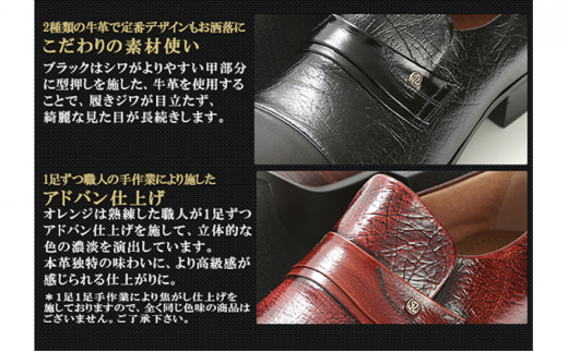 7. ビジネスシューズ 本革 革靴 紳士靴 ストレートチップスリッポン オーストサイド 幅広 ワイド No.1120 オレンジ 24.5 [№5990-5297]0520