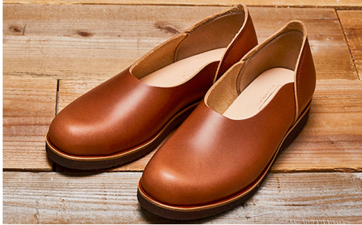 女性らしいデザインで気軽に履けるスリッポンタイプ。厚手且つ柔らかな革で作ったシンプルな構造の靴。