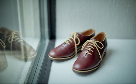 つま先からカカトまでを一枚の革でつくるホールカットタイプの靴。センターに長めに配した靴紐が個性的なデザインです。 厚手の、しかし柔らかなレザーを、敢えてライニング(裏張り)を使わず一枚革で使っています。このつくりが、革がやさしく足を包む履き心地の秘訣です。 ほどよく丸いつま先のラウンド木型を使用。カジュアルながら、洗練されたスタイルの靴に仕上がりました。