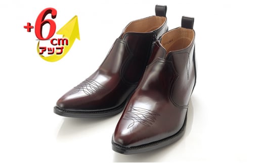 ウエスタンブーツ メンズ サイドファスナー カウボーイ ショート 6cm シークレットブーツ 本革 No.888 ワイン 25.5cm [№5990-5457]0543