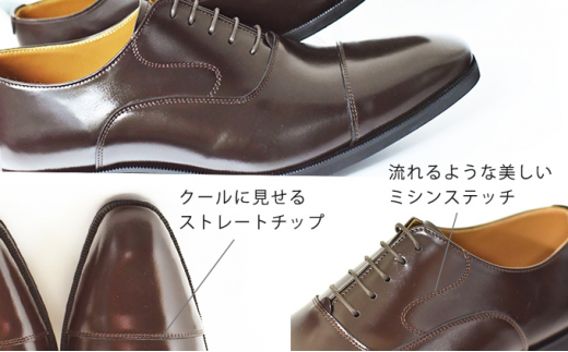 内羽根式ストレートチップは最もフォーマルなデザイン。濃いダークブラウンカラーはグレーやネイビー、ブラック等どんな色のスーツとも合わせやすく、1足持っておくとお洒落の幅も広がります。
