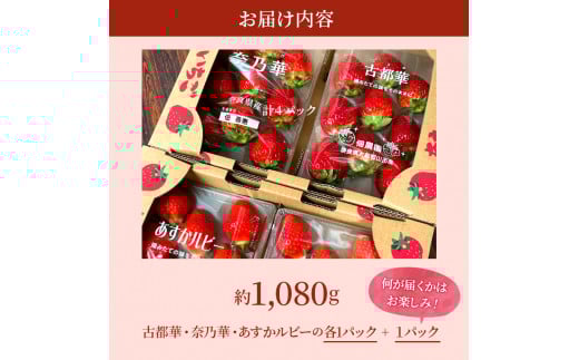 7. 【先行予約】いちご 完熟 3種 食べ比べ 約1,080g(270g× 4パック ) セット 古都華 奈乃華 あすかルビー 詰め合わせ フルーツ 果物 旬 産地直送 デザート ことか 冷蔵 冷蔵配送 [№5990-0612]