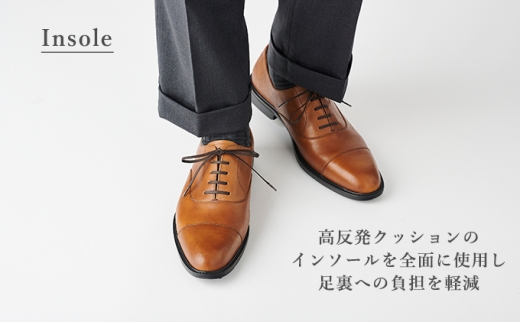 奈良県大和郡山製、ドレスの木型を使用したビシネスシューズ。Franという国産別注レザーはナチュラルな柔らかさ、仕上げ後の発色の良さがあり、カラー色はあえてこの革を使用しています。軽くて弾力性のあるEVA素材のアウトソールはスニーカーのような履き心地を生み出しています。