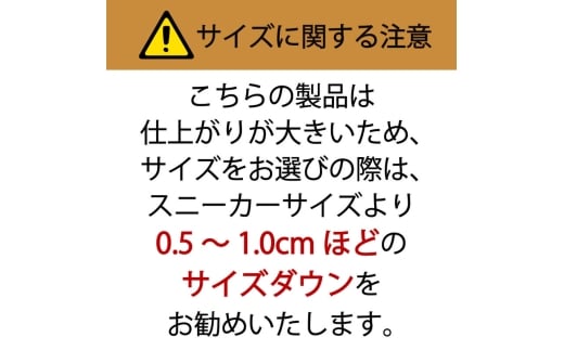 こちらの商品は仕上がりが大きいため、サイズをお選びの際には0.5~1.0cmほどのサイズダウンをお勧めいたします。