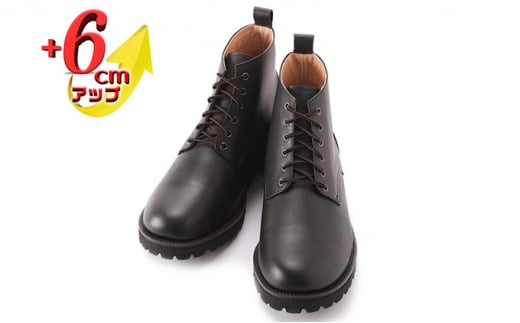 7. ワークブーツ ワイド 本革 幅広 4Eブーツ マウンテンブーツ メンズ 6cmUP シークレットブーツ No.1573 ブラック 24.5cm [№5990-6037]0695