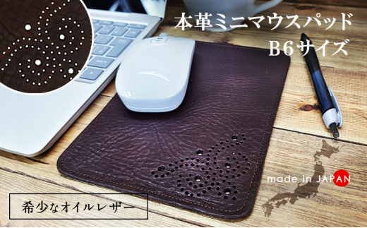 B6サイズの本革マウスパッド。コンパクトで邪魔にならず、ノートパソコンと一緒にスマートにPCケースに収納可能。