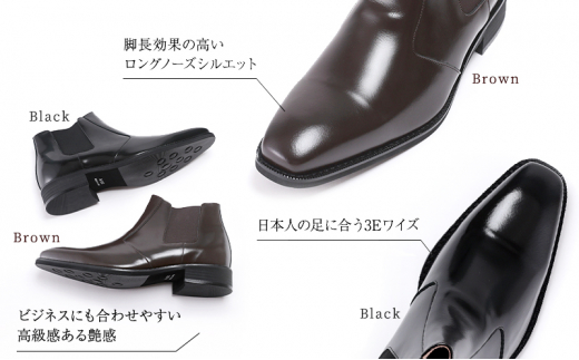 サイドゴアブーツ メンズ 本革 革靴 6cmアップ シークレットシューズ No.1304 ダークブラウン 25.0cm [№5990-6377]0758