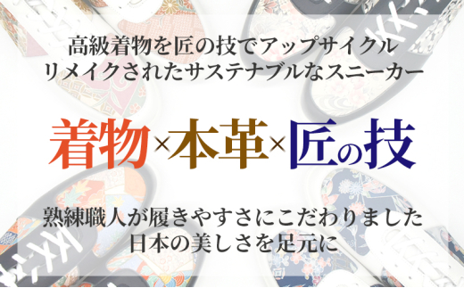 着物の美しさを活かし本革と合わせることで普段使い可能なスニーカーに。