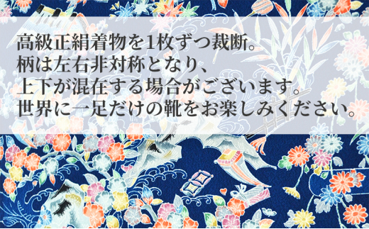 ※着物の柄は靴の左右で異なり、柄の上下左右は混在します。裁断の仕方により、1足ずつ、片足ずつ柄が異なります。