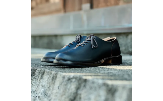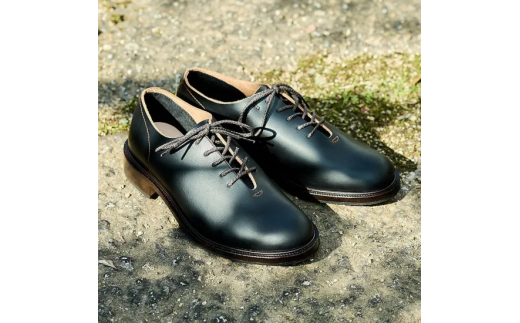 つま先からカカトまで縫い合わせなく続く一枚の革でつくるホールカットタイプの靴です。
