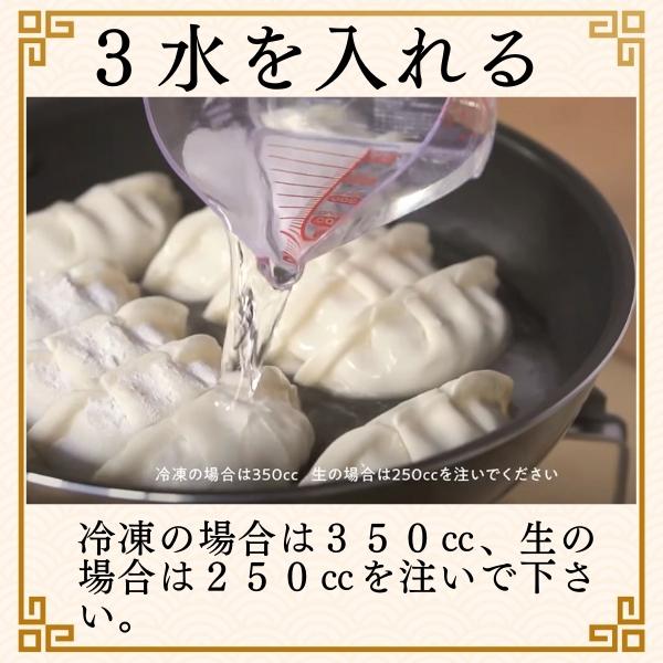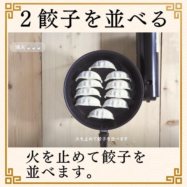 野菜(キャベツ、ニラ、ニンニク、生姜)、皮(小麦粉、粉末状小麦たん白、食用加工油脂、でん粉、食塩)、豚肉(国産)、豚脂、片栗粉、しょうゆ、ごま油、砂糖、塩、清酒、こしょう/酸化防止剤(V.C)、pH調整剤、加工デンプン、エタノール、ソルビトール、乳化剤、リン酸三カルシウム、調味料(アミノ酸等)、保存料(安息香酸Na)、酸味料