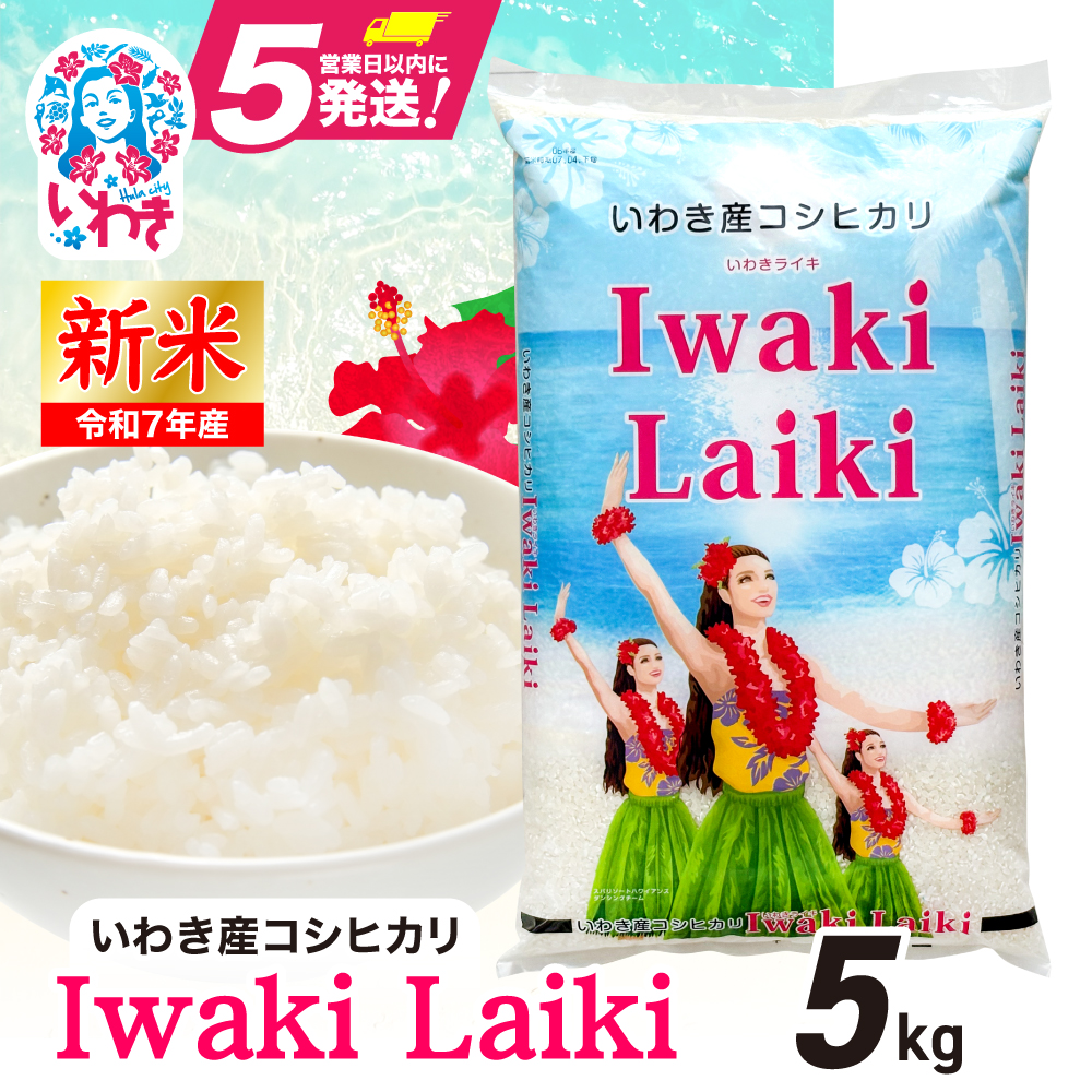 Iwaki Laiki いわき産コシヒカリ5kg(5kg×1袋) | IwakiLaiki いわき産 コシヒカリ 5kg 新米 産地直送 ブランド米 上白米 一等米 ミネラル豊富 日照 旨み ふっくら ねばり 甘み 食感 ギフト 贈答用 白米 精米 送料無料 お米 こめ 人気 | FU004-5kg-r7