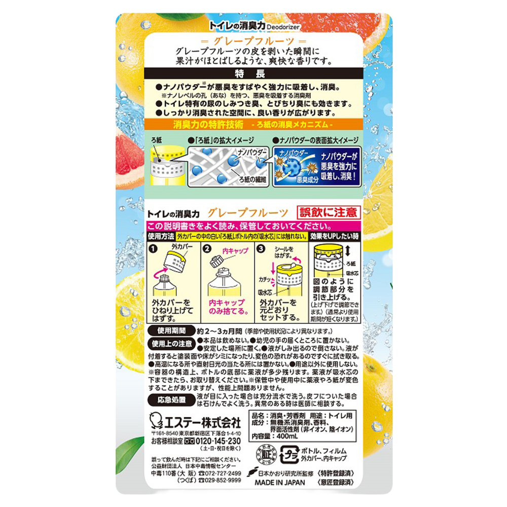 空気をかえようエステー トイレの消臭力 グレープフルーツ6個セット | トイレの消臭力 消臭芳香剤 エステー製品 トイレ用消臭剤 ナノパウダー 強力消臭 長持ち香り 尿臭対策 芳香調整可能 グレープフルーツ 消臭グッズ 消臭力シリーズ トイレ快適グッズ | NK007