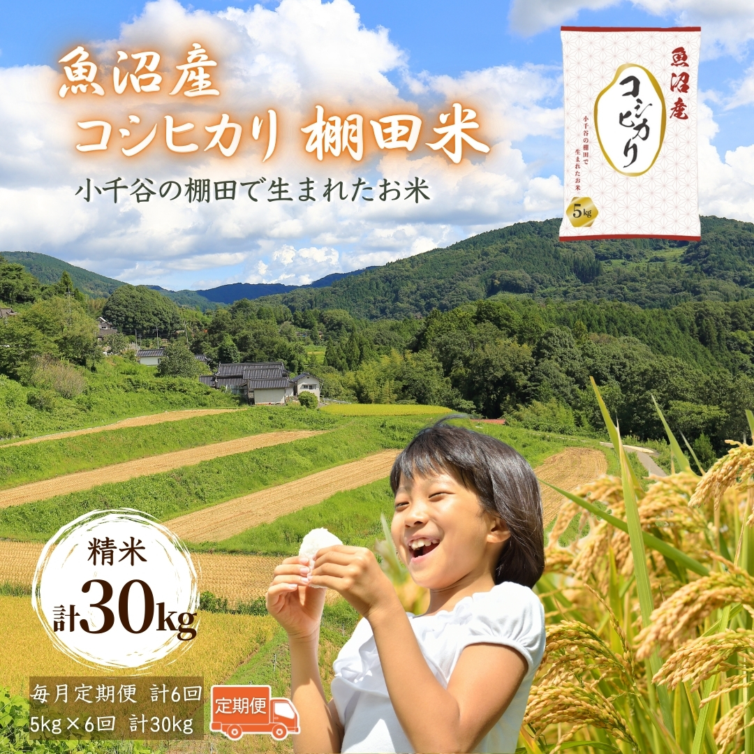 令和7年産 魚沼産コシヒカリ 棚田米 精米30kg(5kg×6回)定期便毎月発送【0002-RC05DB00-02】