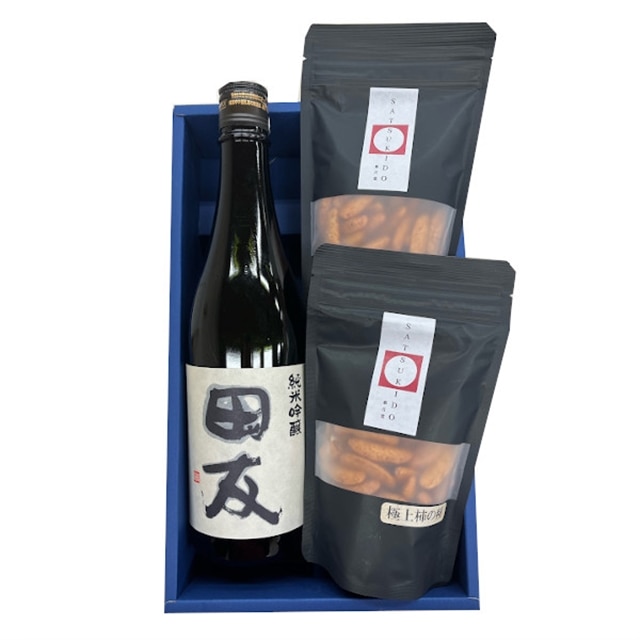 日本酒 純米吟醸 田友 720ml&極上柿の種2袋セット (化粧箱入) ワイングラスでおいしい日本酒アワード 高の井酒造・竹内製菓 【0002-0011-01】