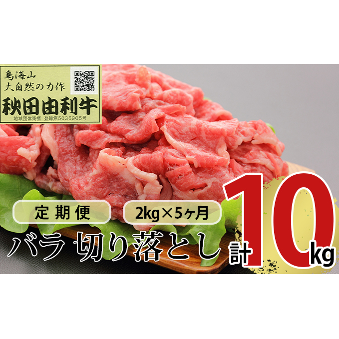 《定期便》5ヶ月連続 秋田由利牛 バラ切り落とし 2kg(1kg×2パック)