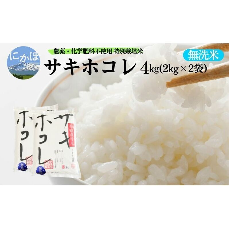 新米予約 栽培期間中 農薬・化学肥料不使用【無洗米】特別栽培米サキホコレ4kg(2kg×2) 令和7年産 秋田県 にかほ市 お米 米 こめ
