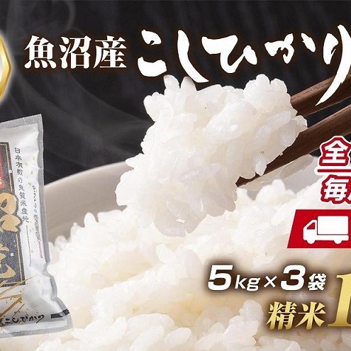 7. 【定期便】新潟県 魚沼産 コシヒカリ お米 15kg×計12回 精米済み 年間 毎月発送 こしひかり(お米の美味しい炊き方ガイド付き) ご飯 ブランド米 銘柄米