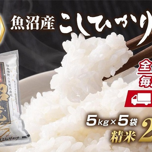 7. 【定期便】新潟県 魚沼産 コシヒカリ お米 25kg×計12回 精米済み 年間 毎月発送 こしひかり(お米の美味しい炊き方ガイド付き) ご飯 ブランド米 銘柄米