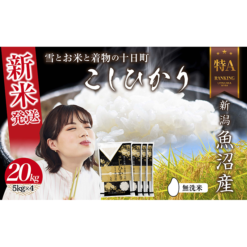 【令和7年産 新米予約】 無洗米 令和7年産 新潟県 魚沼産 コシヒカリ お米 20kg (5kg×4袋)精米済み(お米の美味しい炊き方ガイド付き)