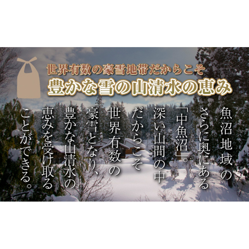 山清水米が栽培されている池谷・入山集落は冬には3メートル以上の雪が積もり、春になると雪解け水が大地に浸透し、ミネラルたっぷりの山清水となって田んぼに注がれます。