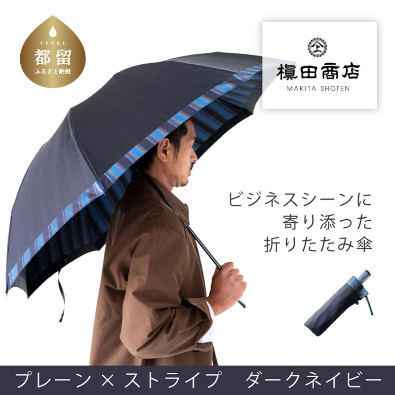 紳士折りたたみ傘 Tie Plain×Stripe DARK NAVY