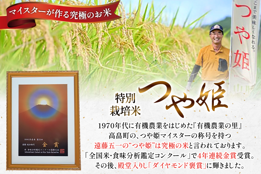 その高畠町で、つや姫マイスターの称号を持つ遠藤五一の“つや姫”は究極の米と言われております。