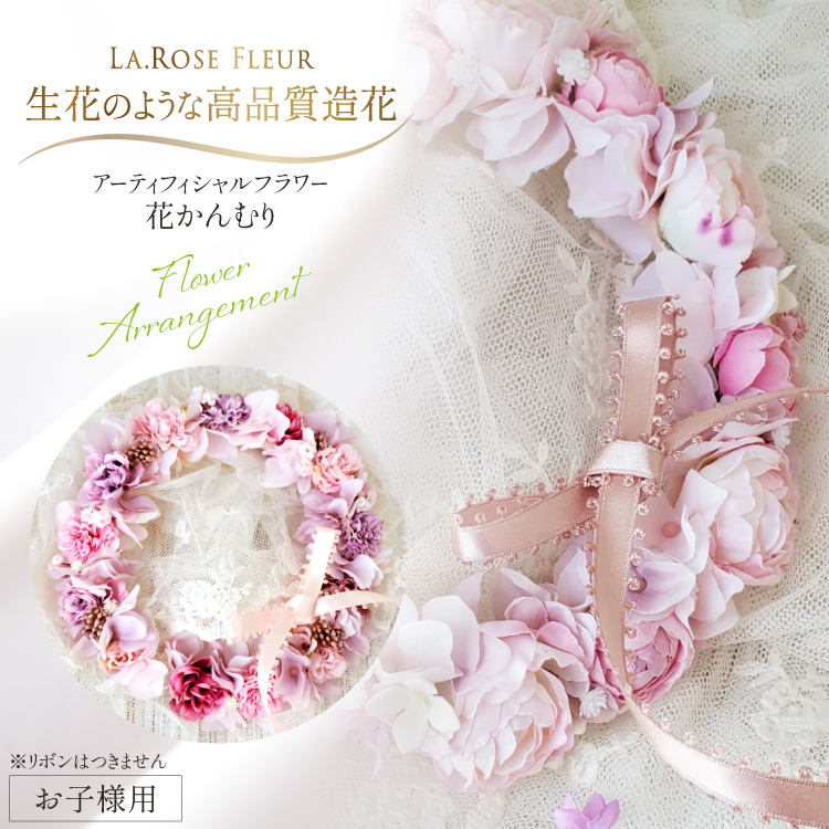 お花にノンワイヤーなので赤ちゃんから小学生、動物にも痛みの心配もない安全な花冠です。