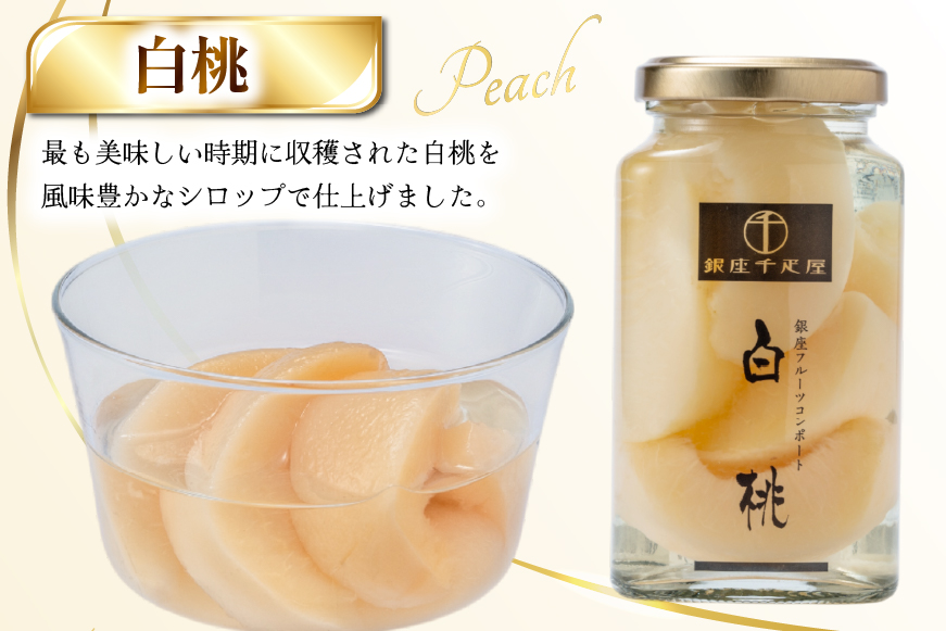 【白桃】白桃水煮(白桃(国産))、砂糖、リキュール/酸味料、酸化防止剤(V.C)、香料