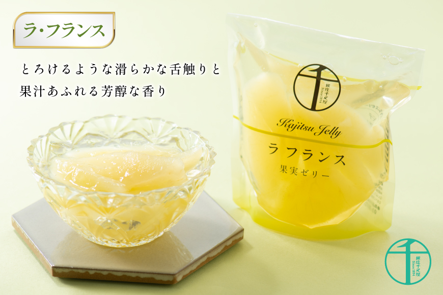 なめらかでとろけるような口どけのゼリーは、果実の美味しさをやさしく包み込み、上品な味わいを引き立てます。