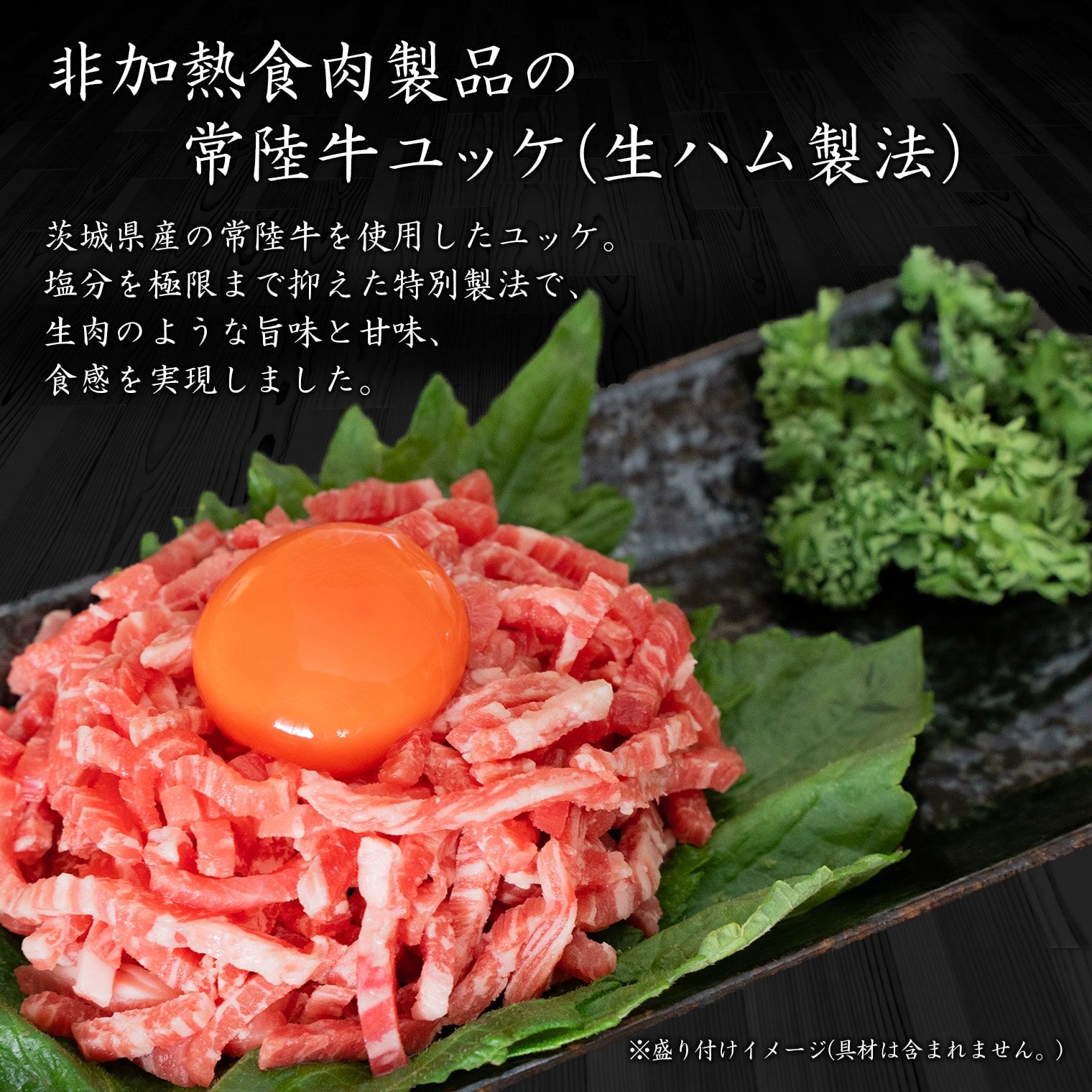 非加熱食肉製品の常陸牛ユッケ(生ハム製法)。