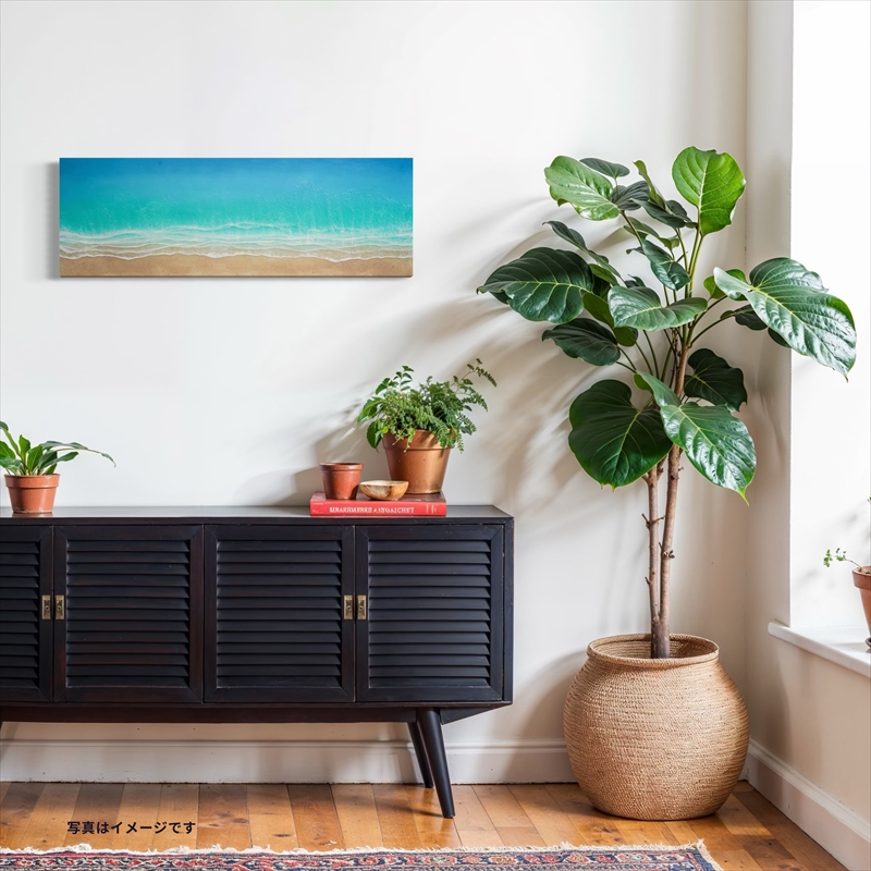 ALOHA GLASSが茨城県日立市のアトリエで制作する、波レジンアートパネル(特注サイズ 40×120cm)です。
