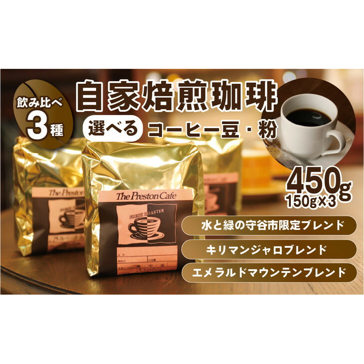 【中挽き(コーヒーメーカー)】【飲み比べ】コーヒー 珈琲 豆 450g (150g×3袋) セット 自家焙煎 オリジナル ブレンド 水と緑の守谷市