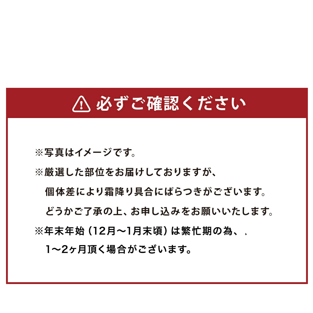 ・厳選した部位をお届けしておりますが、個体差により霜降り具合にばらつきがございます。どうかご了承の上、お申し込みをお願いいたします。